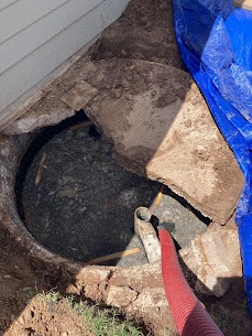 The 3 pictures below are tanks that we have been called out to that have failed due to H2S/sulfuric acid corrosion. As the septic system bacteria are breaking down the sludge in the bottom of the tank, they create a gas called hydrogen sulfide (H2S). When H2S comes in contact with moisture, it converts to sulfuric acid. This acid reacts with the calcium molecules in concrete to produce calcium sulphate and water. The corrosion significantly weakens the tank structure, to the point the tank lid will soften and in some cases cave in.